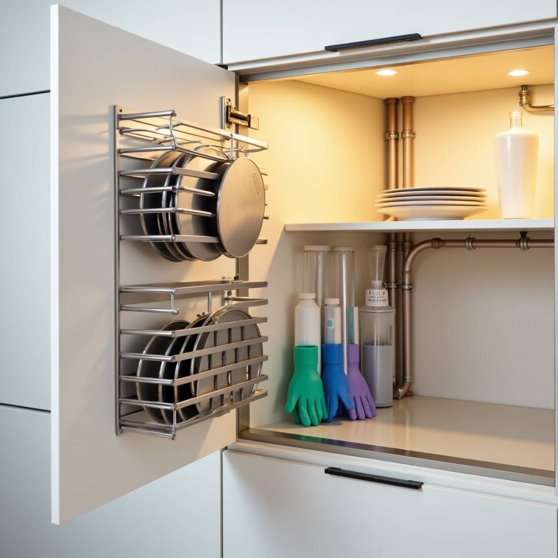 Organize Cabinet Doors With Slim Racks by Komal Shinde ( Disclaimer: As an Amazon Associate, we earn commissions from qualifying purchases at NO additional cost to the customer.) Save